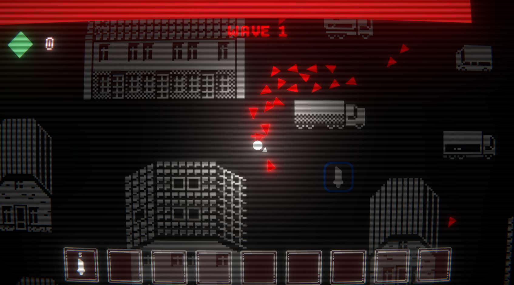 BAMN is an ongoing university game project that blends the Survivor and Tower Defense genres. Players must strategically place traps and lure enemies into them to survive as long as possible against relentless zombie hordes (represented by minimalist geometric shapes).