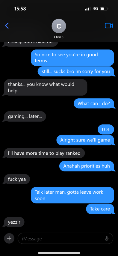 Beyond film and game development, I create highly engaging web content. After producing TikTok skits that generated over a million likes, I am currently writing an interactive slice-of-life dramedy series on Patreon, formatted entirely as text messages. This creative format highlights my core strengths: crafting unique character voices and writing fun, realistic dialogue. By applying game design principles to this narrative foundation, I use interactive choices to retain a loyal community of over 300 paid members and drive anticipation for every new chapter.